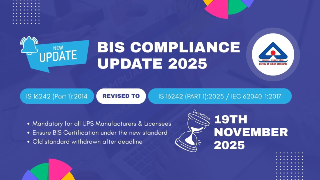 The Bureau of Indian Standards (BIS) has issued an important compliance update for manufacturers of Uninterruptible Power Systems (UPS).